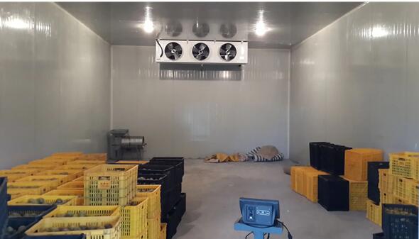 2、1號水果恒溫庫和2號水果恒溫庫制冷系統分別配備的是一套8HP和5HP美國艾默生谷輪中溫渦旋壓縮機組(含冷凝器、電磁閥、壓力控制器等),該機組制冷量大,性價比高,安全可靠。兩間冷庫內各配備了一套浙江凱迪系列高效強風型冷風機,該風機運行穩定噪音小,送風距離遠,使得庫內降溫速度快,極大增強了化霜效果,增加快速對流循環,從而達到每個角落的溫度均勻性。
