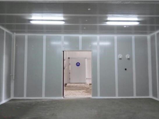 針對氣調(diào)庫氣密性的高度要求,在采用100mm聚氨酯、密度40±2kg/m³雙面0.426彩鋼的同時,并且對氣密層亦采用“三膠兩布”來加強完善氣體密封性的工作。